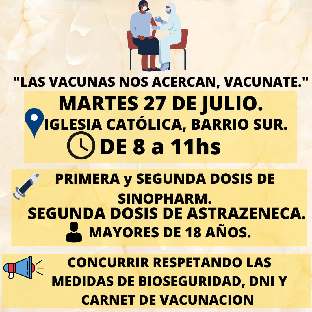 Se pide a la población concurrir respetando las medidas de bioseguridad, llevando DNI y carnet de vacunación.