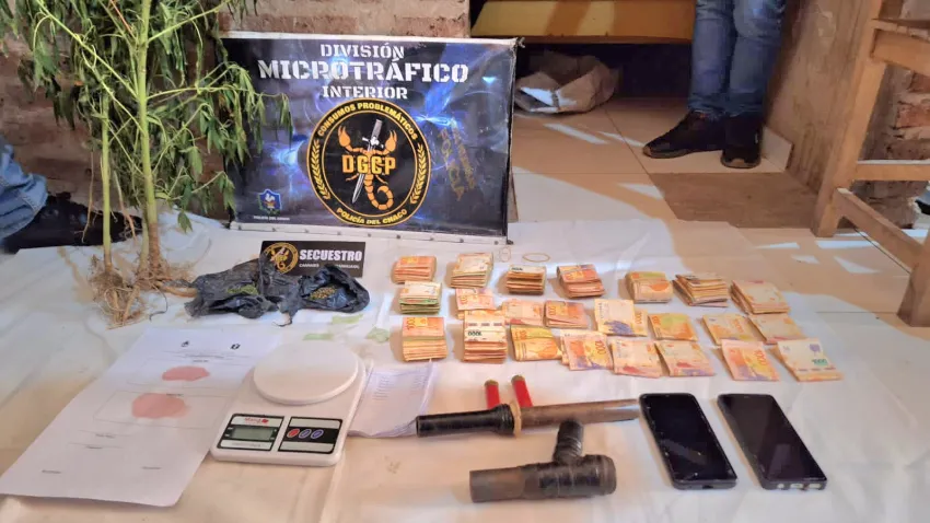 Durante la diligencia, se encontraron evidencias significativas que indicaban la presencia y comercialización de drogas en el lugar. Se incautaron dos envoltorios de marihuana disgregada, con un peso total de 11 gramos, así como también se descubrieron cinco plantas de cannabis sativa, que alcanzaban una altura de hasta un metro y medio. Además, se halló una balanza digital, dos teléfonos celulares, recortes de bolsas utilizadas para preparar dosis y una suma de dinero en efectivo que ascendía a 881 mil pesos.