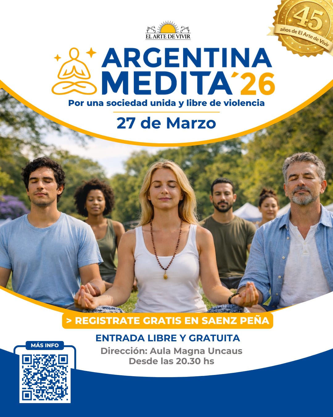 Este 27 de marzo en decenas de ciudades de Argentina se ofrecerá́ una jornada especial donde instructores y voluntarios guiaran una meditación grupal acompañada de técnicas de respiración que ayudan a reducir el estrés y la ansiedad. Además, habrá́ una sesión de relajación y música en vivo.