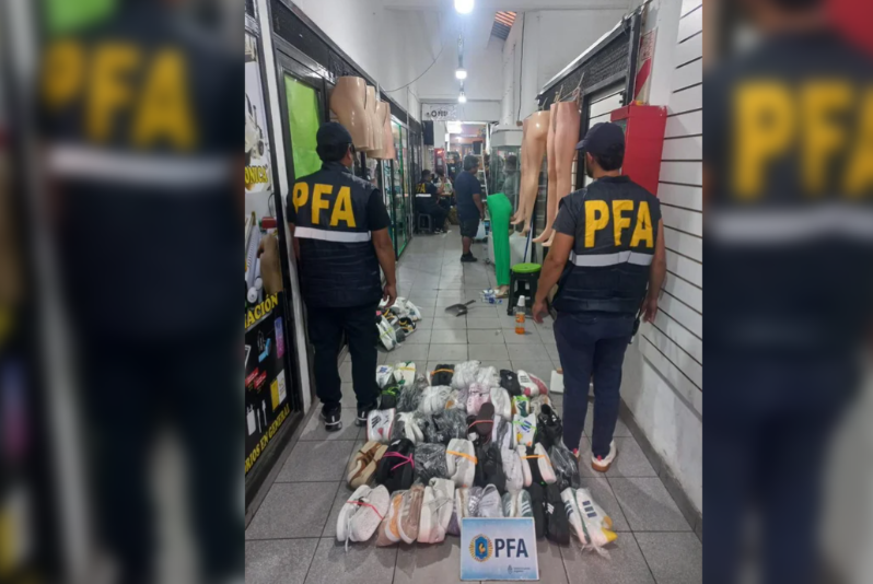 Como resultado del procedimiento, se secuestraron 70 dispositivos telefónicos, junto con 50 remeras, 226 pares de zapatillas y 55 pantalones de marcas apócrifas.