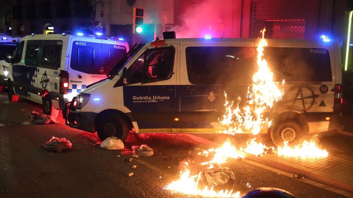 Barcelona: Manifestantes incendiaron una furgoneta policial