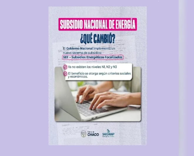 Ante la puesta en marcha del nuevo esquema de subsidios energéticos definido por el Gobierno Nacional, desde SECHEEP se informa a los usuarios del Chaco sobre los principales alcances de la medida y cómo impacta en la facturación del servicio eléctrico.
