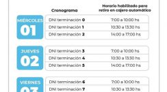 Pago de haberes para activos y pasivos provinciales a través de la terminación del número del DNI y franjas horarias determinadas para evitar la aglomeración de personas. Se pagará pasivos…
