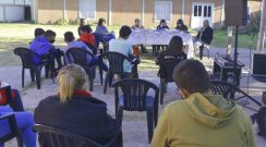 La gente de la Capilla nos recibió en un patio muy bien arreglado. Alicia armó la mesa de libros y un grupito de adolescentes entró a curiosear ante nuestra presencia.Con…