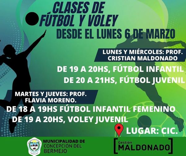 Desde el Lunes 6 de Marzo, en las instalaciones del CIC, comenzarán las clases de fútbol y voley con el profesor Cristian Maldonado y la profesora Flavia Moreno.