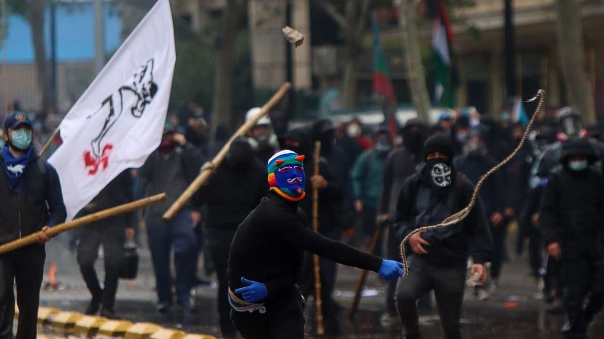 La Policía reportó en Twitter «una mujer herida por fuegos artificiales, 17 carabineros lesionados de diversa consideración, nueve detenidos por desórdenes y uno por porte de arma a fogueo».