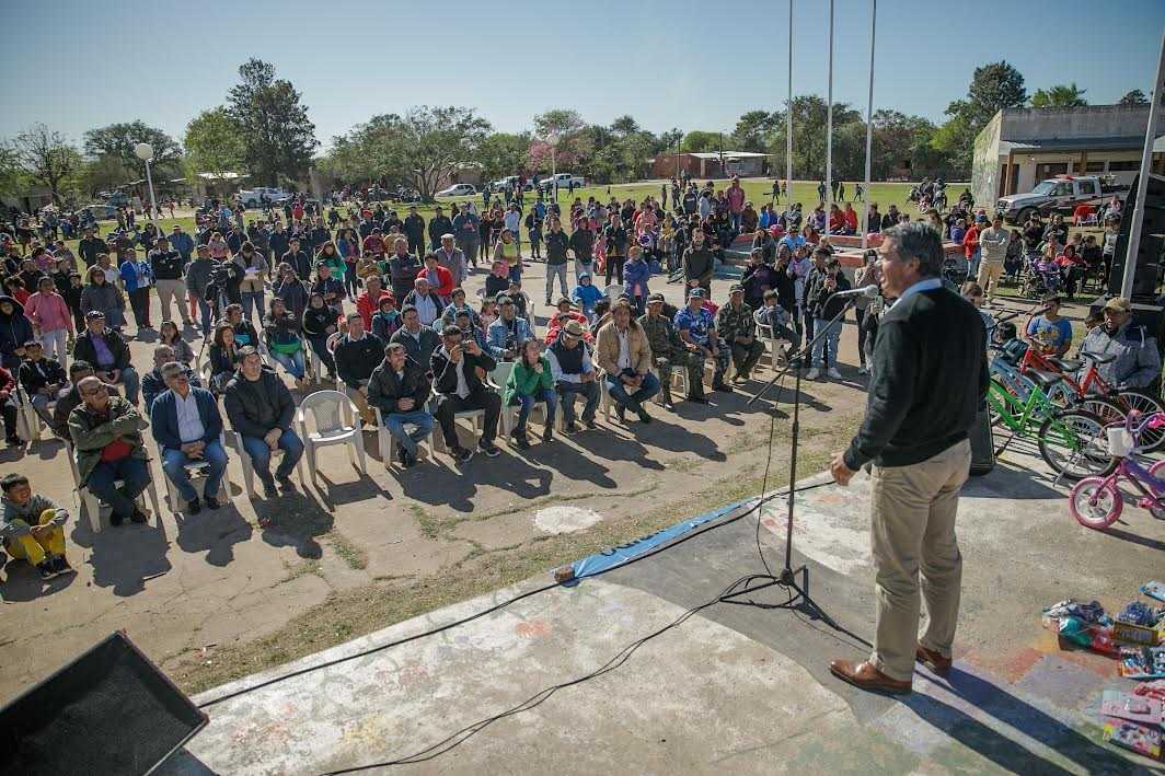 El mandatario puso en valor el crecimiento del flamante municipio, que el próximo 17 de septiembre elegirá por primera vez intendente: la pavimentación de la ruta de acceso, la escuela Florencio Tenev, el jardín de infantes, el anexo de la escuela 87, el hospital, electrificación rural, entre otros.