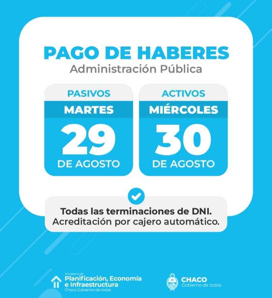El pago de haberes a la administración pública comienza este martes 29 con la acreditación de salarios al sector pasivo. El miércoles 30 continiuará con el pago al sector activo. El viernes 18 se acreditó el refrigerio para este sector.