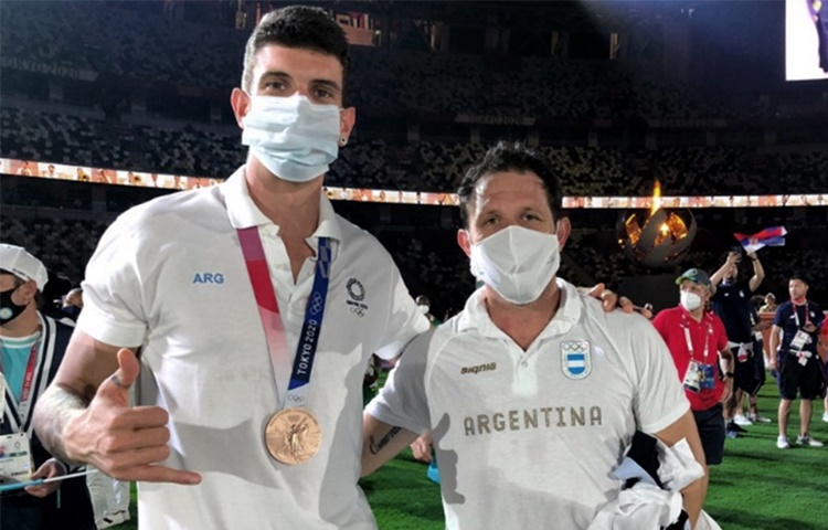 El histórico jugador de Los Leones, que anunció su retiro del seleccionado luego de competir en Tokio, encabezó la comitiva nacional que también contó con la presencia del equipo masculino de vóleibol, ganador de la medalla de bronce.