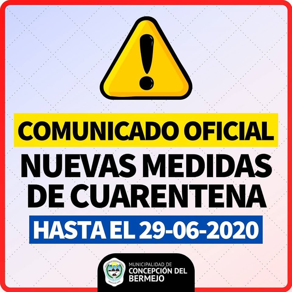 Concepción del Bermejo toma nuevas medidas ante el avance de la pandemia hasta el 29 de Junio