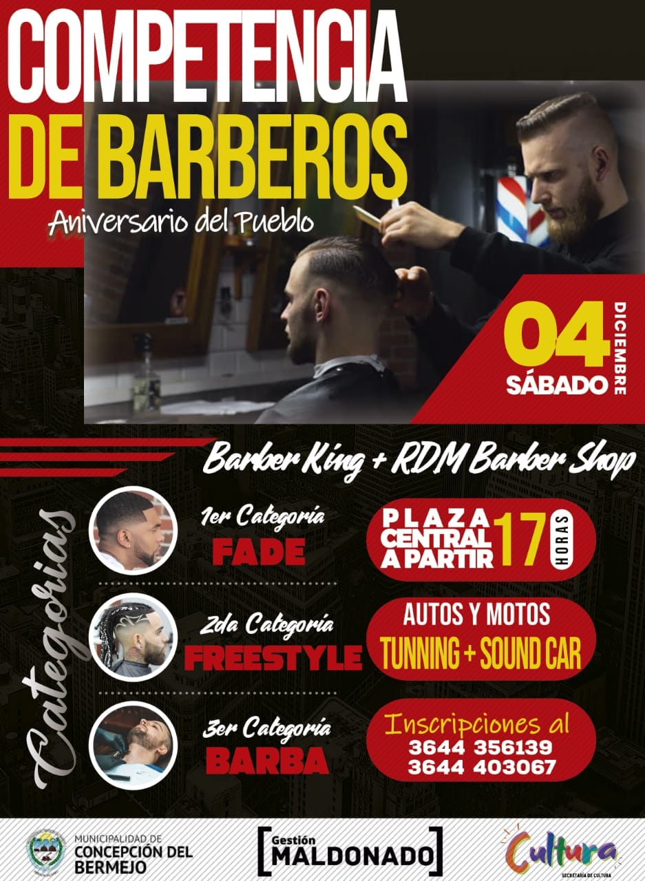 En el marco de un aniversario más del pueblo, el próximo sábado 4 de diciembre se llevará a cabo en la Plaza Central una competencia de barberos.