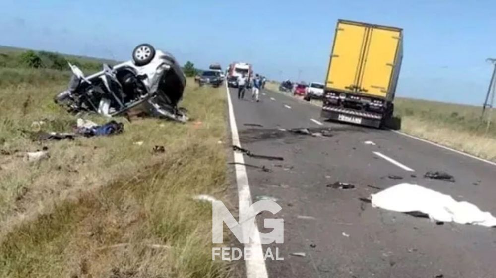 El auto en el que viajaban las víctimas fatales chocó en la Ruta 14 contra un camión de Correo Argentino que viajaba a Buenos Aires. Investigan las causas que provocaron el hecho