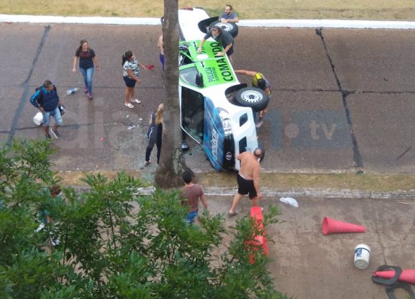 La camioneta circulaba a gran velocidad y habría perdido el control en una curva frente al ingreso al Parque Mitre de Corrientes. Producto de la maniobra la camioneta pegó un vuelco y terminó sobre uno de sus laterales.