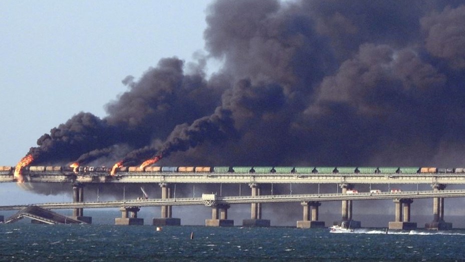 El Comité Nacional Antiterrorista de Rusia comunicó antes que la explosión de un camión provocó el incendio de siete vagones cisterna de un tren y la destrucción parcial del puente de Crimea.