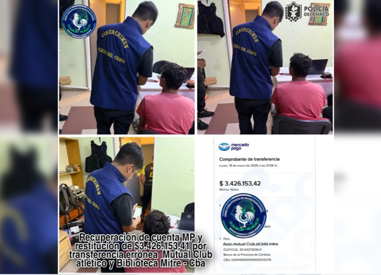 En el marco de una investigación iniciada por una transferencia bancaria electrónica errónea, personal del Departamento Cibercrimen llevó adelante un amplio operativo técnico y de campo que permitió recuperar y restituir una suma superior a los tres millones de pesos a una ciudadana damnificada.