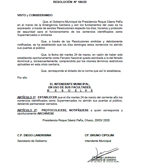 EL INTENDENTE MUNICIPAL EN USO DE SUS FACULTADES RESUELVE