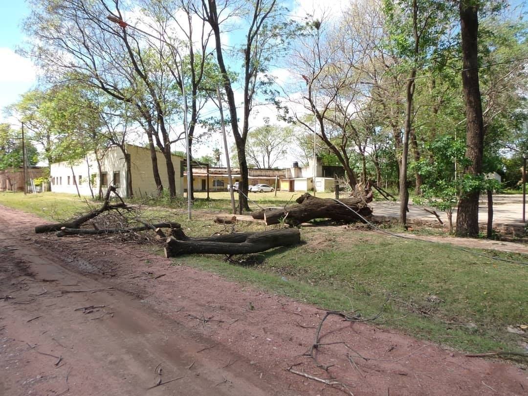El temporal que azotó la localidad anoche dejó un saldo de varios árboles y postes derribados, así como también destrozos en varias viviendas.