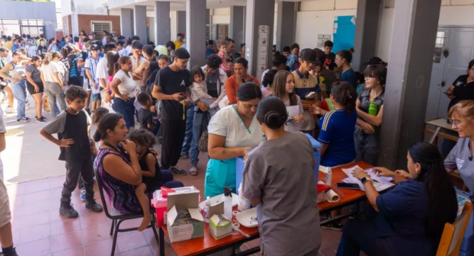La primera de estas actividades se llevó a cabo en la Escuela N.° 352, en el barrio Luz y Fuerza del barrio Hipólito Irigoyen, donde se realizaron más de 500 atenciones correspondientes a certificados de buena salud, bucodentales, mediciones de talla y peso, y actualizaciones de los calendarios de vacunas.