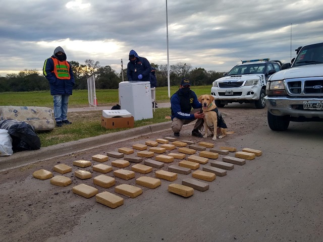 El perro «Balton» dió con casi 35 kilos de marihuana en La Leonesa