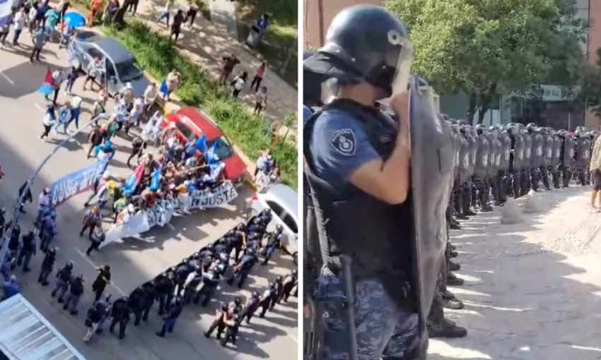 En el relato, expresaron que tras solicitarles que «subieran nuevamente a la vereda de la plaza», se negaron «rotundamente» y manifestaron «estar cansados de que no se les permita cortar la calle». Ante esto, los referentes sociales comenzaron a incitar a sus dirigidos a continuar con la protesta y los efectivos tomaron la decisión de avanzar con los grupos antidisturbios en conjunto con Caballería, FOEF y personal convencional para desplazarlos.