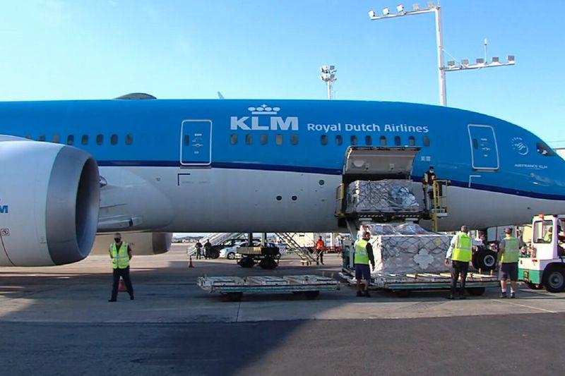 Esta mañana, arribó al Aeropuerto de Ezeiza, un vuelo de la aerolínea holandesa KLM, con 218 mil vacunas del laboratorio AstraZeneca y la Universidad de Oxford.