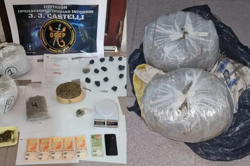 En la mañana de este martes, personal de la División Drogas Interior realizó un allanamiento en una vivienda ubicada sobre avenida Alem al 700, en la localidad de Juan José Castelli. Allí encontraron envoltorios con marihuana que arrojaron un peso total superior a 7 kilos, además de otros elementos que sirven a la causa.