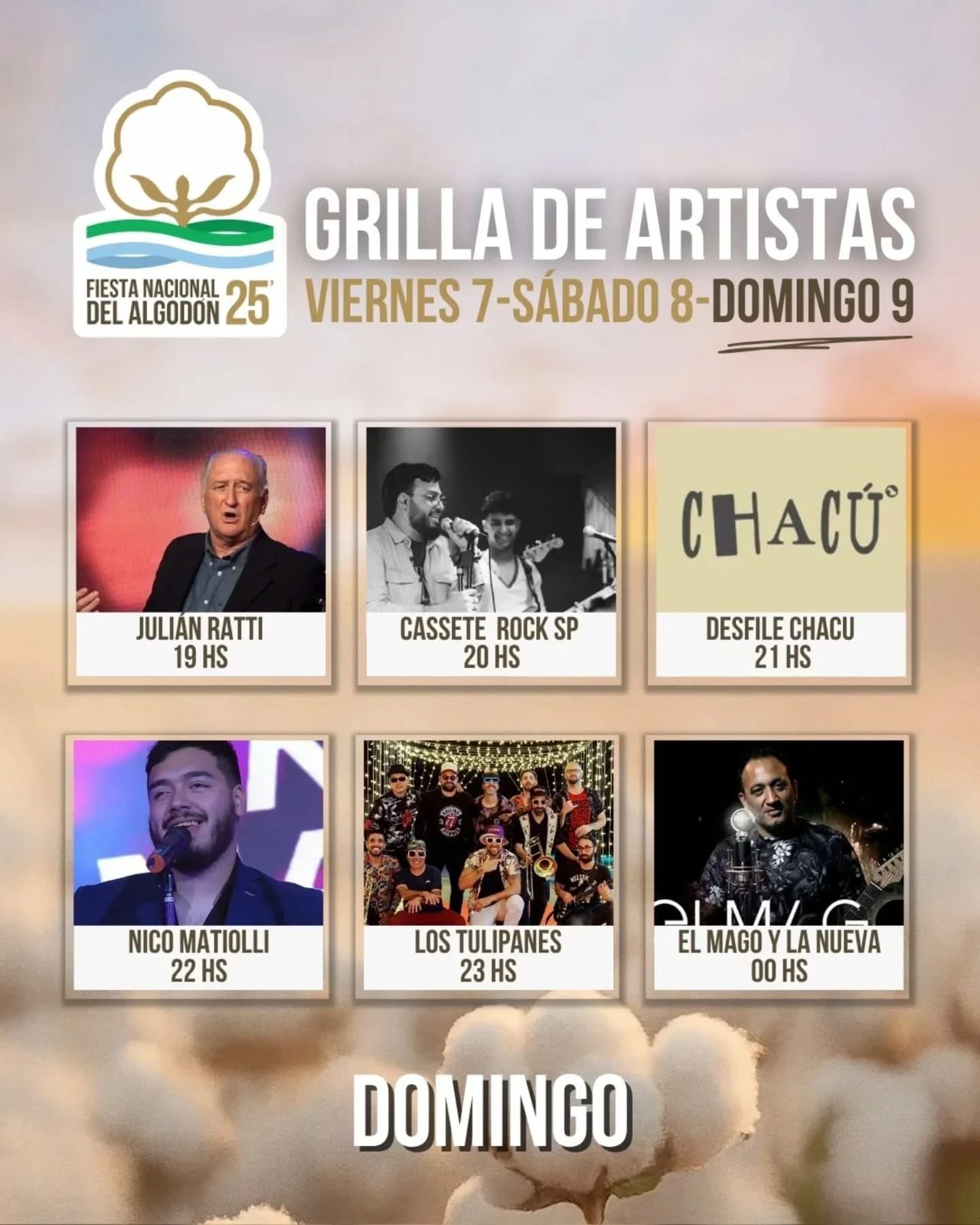 Grilla de artistas de la Fiesta Nacional del Algodón