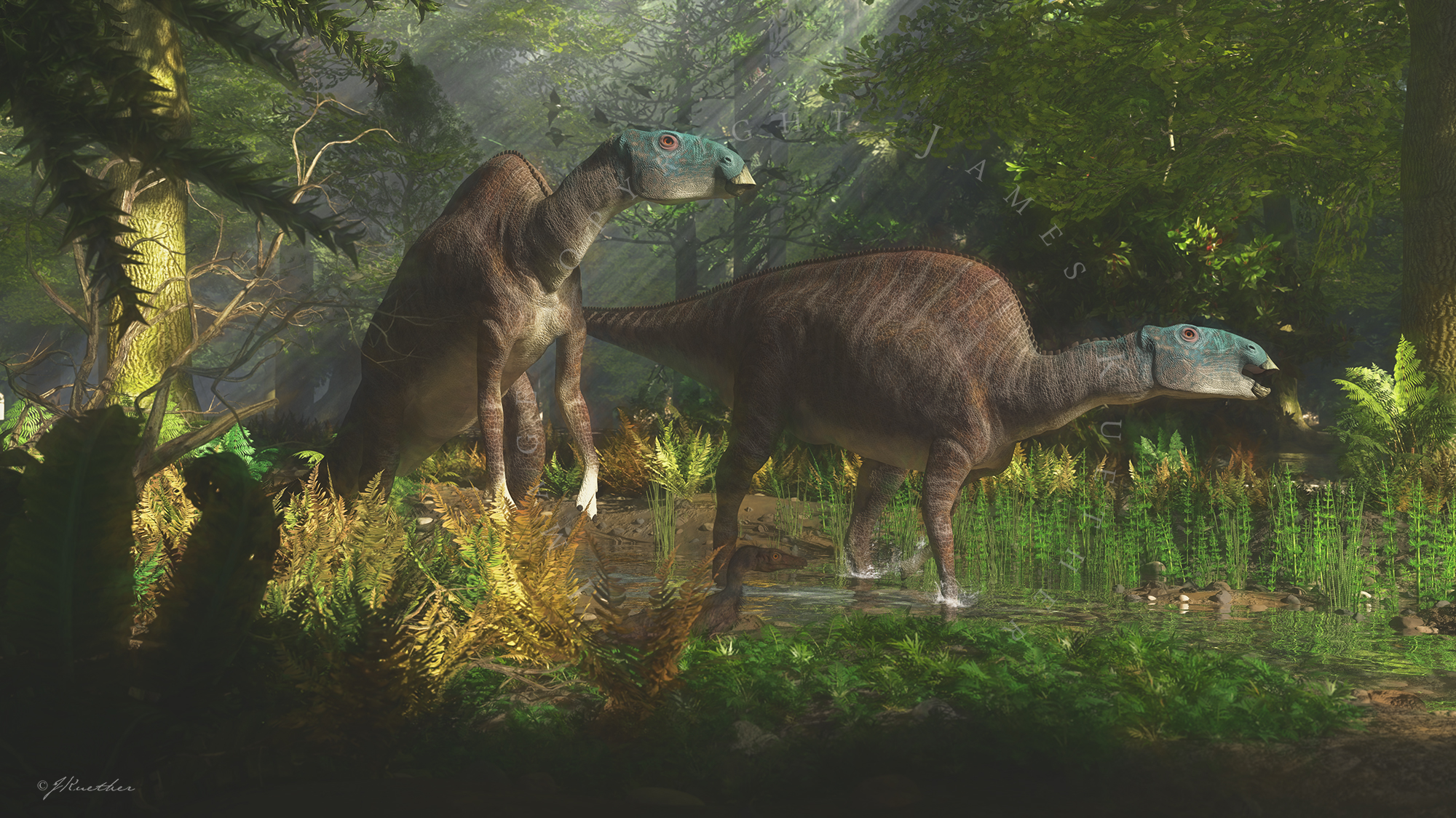 A esta isla dominada por grandes dinosaurios herbívoros de cuello largo conocidos como titanosaurios, llegaron también los también herbívoros hadrosaurios provenientes de Asia.
