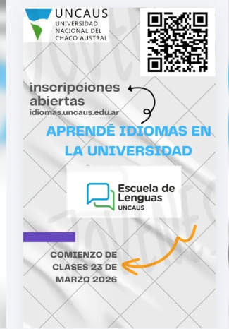 La Universidad Nacional del Chaco Austral (UNCAUS) informó que se encuentran abiertas las inscripciones para una nueva edición de los cursos de idiomas que dicta la Escuela de Lenguas UNCAUS, una propuesta académica orientada a fortalecer la formación cultural, educativa y profesional de estudiantes y de la comunidad en general.