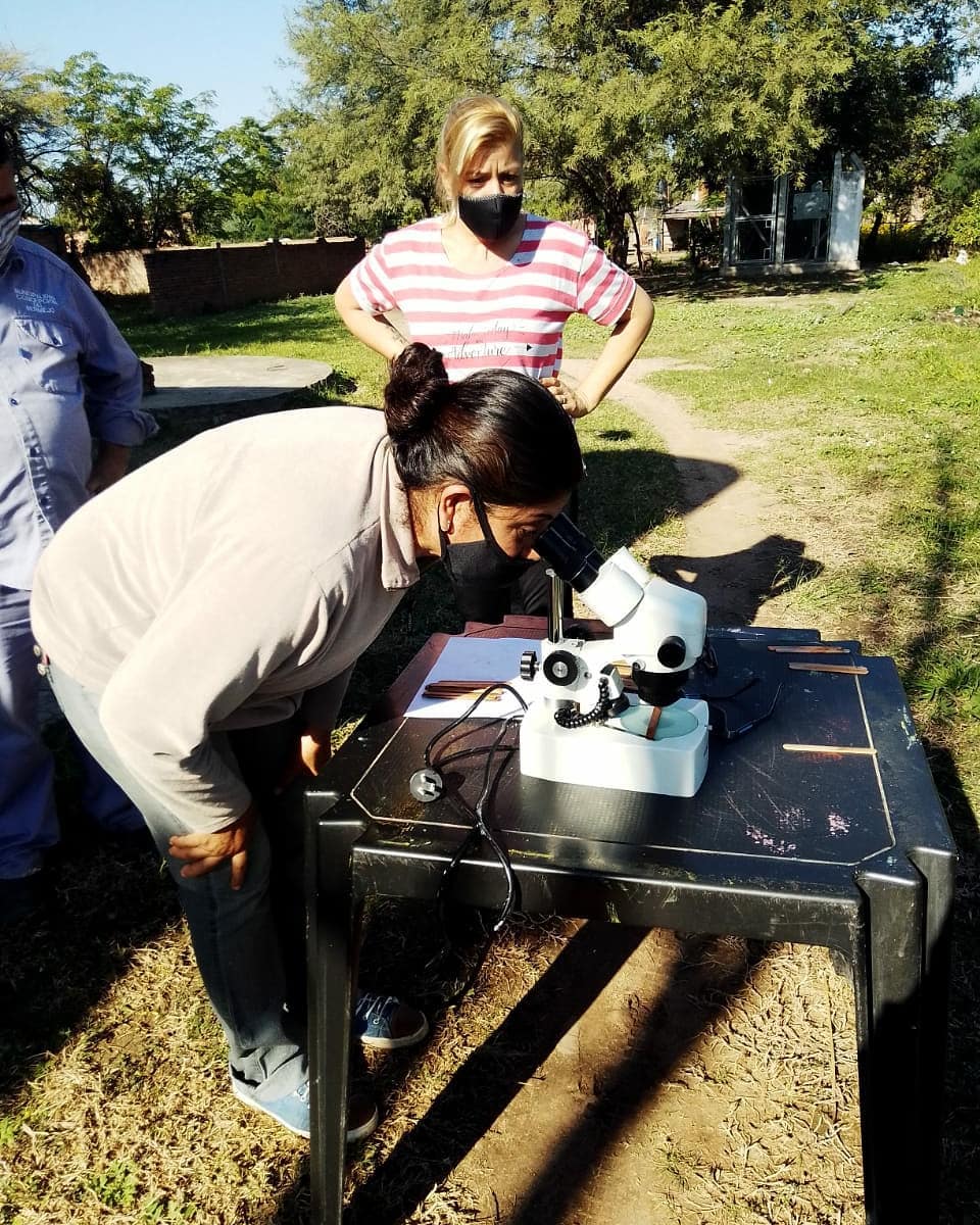 Hoy 21 de mayo se evalúo las ovitrampas que se colocaron en el barrio Perón el día 6 y 7 de mayo, para la vigilancia del aedes aegyti, la única especie de mosquito que transmite el dengue en esta zona .