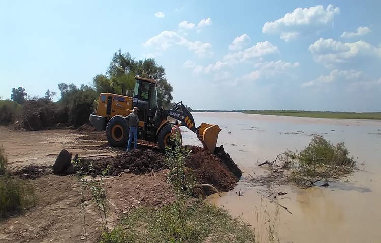 Además, se avanza con la construcción de un espigón de unos 200 metros, con material natural para prevenir el golpe del río sobre las costas. En el lugar, se sumó una retroexcavadora con pontón a la que ya venía trabajando, con el objetivo de avanzar dentro del cauce del río para encauzarlo.
