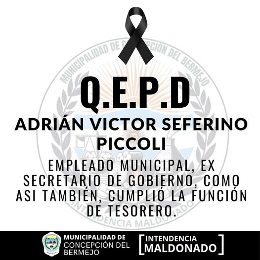 participa y acompaña con profundo pesar el fallecimiento de quién en vida fuera Adrian Victor Seferino Piccoli, Empleado municipal, quien también se desempeñó como secretario de gobierno y Tesorero municipal.