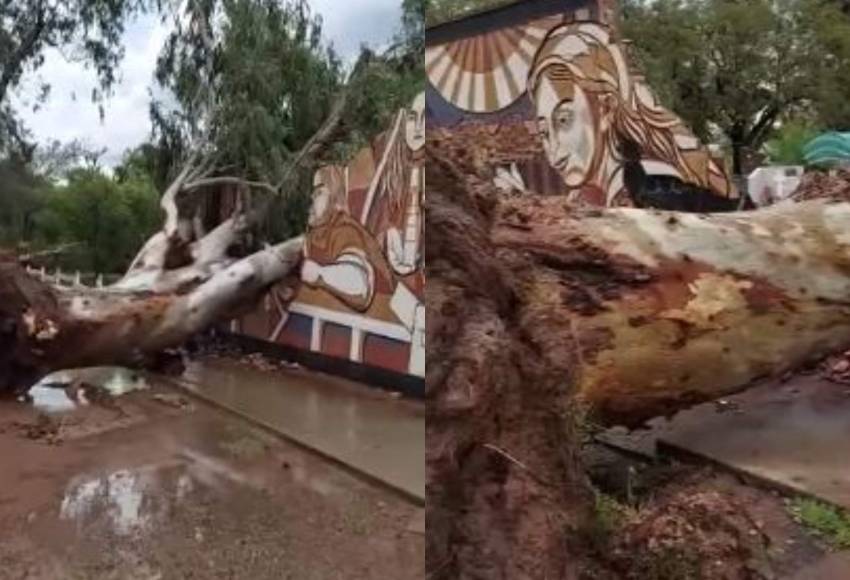 Se trataba de un eucalipto que cayó hacia el lado del cementerio ocasionando graves destrozos en el lugar.