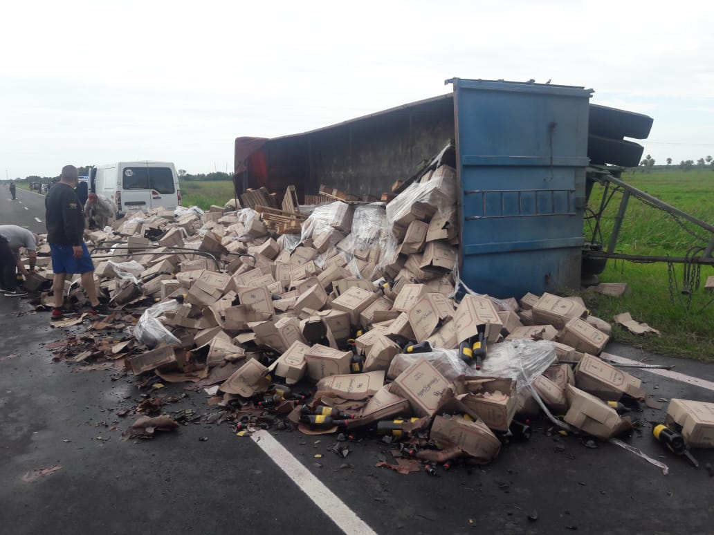 Más de 2 mil cajas de vino sobre la ruta 11 tras el vuelco de un camión