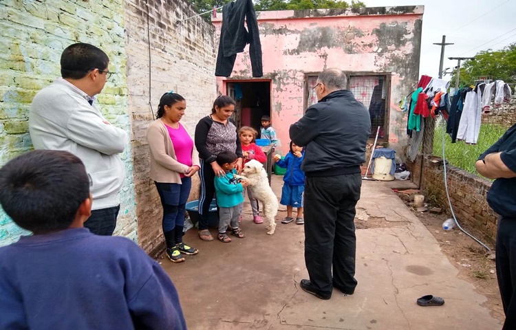 Entre otras visitas, el obispo pudo interiorizarse de la labor que llevan adelante en la parroquia de Hermoso Campo. Junto al párroco, los grupos parroquiales se organizan para asistir a los damnificados tanto de la zona urbana como rural.