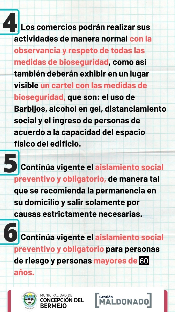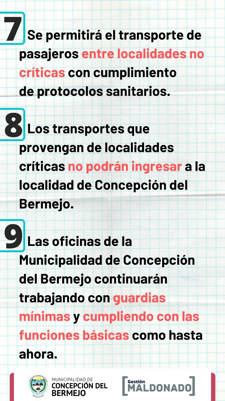 Coronavirus: Nuevas medidas tomadas por el municipio de Concepción del Bermejo