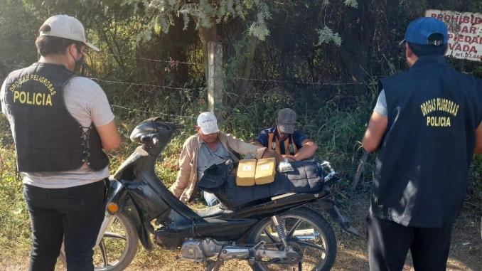 Hace días atrás una publicación por un medio gráfico expresaba la situación de inseguridad que vive la ciudad TERMAL y que conforme manifestaciones de vecinos, se debía al consumo de ESTUPEFACIENTES y que indirectamente se atacaba a la autoridad de aplicación por su inacción. Surge desde la base de Datos de la DIRECCIÓN DE DROGAS un sin números de procedimientos realizados en todo el ámbito jurisdiccional que abarcan (Sáenz PEÑA, AVIA TERAI, QUITILIPI, MACHAGAY, PLAZA, etc). Entre esas intervenciones se destaca arduamente la labor de las DIVISIONES con base en SAENZ Peña, que han secuestrado y detenido distintos sujetos dedicados a la venta y transporte de estupefacientes. Hacen mención además que, el 11 de diciembre del año pasado, han allanado dos domicilios en la ciudad TERMAL y se detuvo a dos sujetos por infringir el art 5 inc c de la LEY DE ESTUPEFACIENTES y que luego de abonar una caución real, quedaron en LIBERTAD. Pero en la fecha y en horarios de la siesta, esos dos sujetos que habían recuperado su libertad fueron nuevamente interceptados con casi dos kilos y medio de MARIHUANA. Es decir que el poco tiempo que pasaron INTRA MURO, no le sirvió de medida ejemplifucadora y hoy vuelven a caer por la misma situación. El hecho que se menciona fue en calle 17 prolongación donde dos sujetos se desplazaban en una MOTOCICLETA de 110 c.c. y que personal a cargo del OFICIAL PPAL. POL. MATEO LOPEZ, realizando tareas inherentes a las distintas causas que investigan, observan a estos dos DELEARS y lo interceptan, logrando encontrar en una mochila que llevaban, dos panes y un cuarto de una sistancia verde compacta que fue puesta a la prueba de narcotest arrojando resultado positivo a MARIHUANA. Desde las oficinas de DROGAS surge que en el corto plazo de diciembre a la fecha se han llevado a cabo innumerables procedimientos que hacen a la Policía del Chaco con mayor efectividad y estadísticamente llevan amplio margen sobre otras FUERZAS dedicadas a hacer cumplir estas leyes.