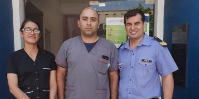 A metros de la dependencia, vieron a una mujer embarazada que estaba en inminente trabajo de parto. En ese momento, la agente Marisa Yedro y el cabo Alejandro Marinelli, quienes cumplen funciones en la División Medicina Legal, ambos auxiliares en enfermería, inmediatamente optaron por trasladarla al centro médico más cercano, en compañía del sargento Fabián Kachuk (Capellán Evangélico).