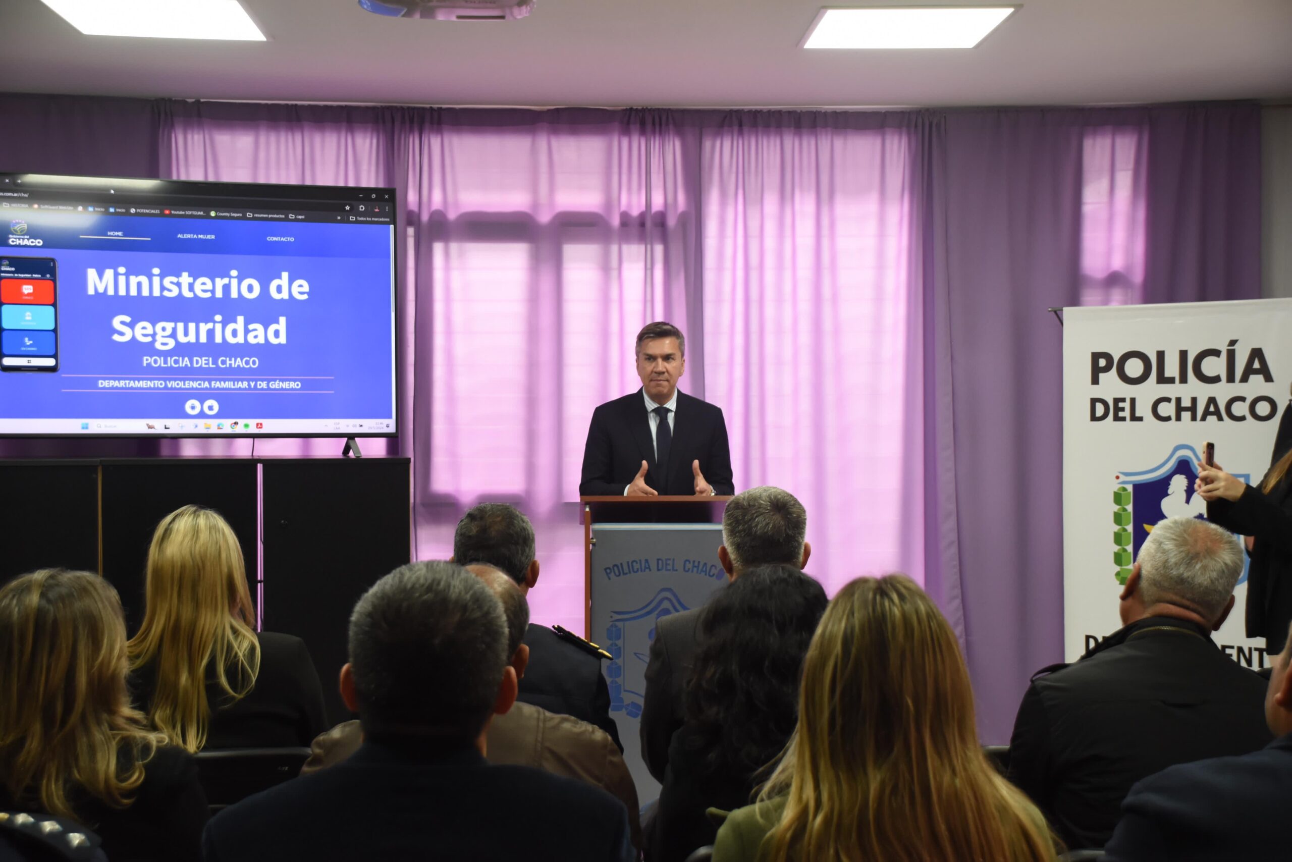 El ministro de Seguridad, Hugo Matkovich aseguró que el lanzamiento de la plataforma “Alerta Mujer” es un paso muy importante en la atención a las víctimas de violencia de género y familiar. “Con los dispositivos que se están incorporando y con el sistema que se pondrá a disposición de la Policía y la Justicia, estamos saldando -como lo dijo el gobernador- una deuda de varios años y este sistema se desplegará a lo largo de toda la provincia”, destacó. Y dijo: “Por primera vez, las 6 direcciones zonales de la Policía del Chaco contarán con este mecanismo de respuesta ante casos de violencia de género y familiar. Además, el sistema estará monitoreado desde un Centro de Control, lo que permitirá un doble seguimiento”.
