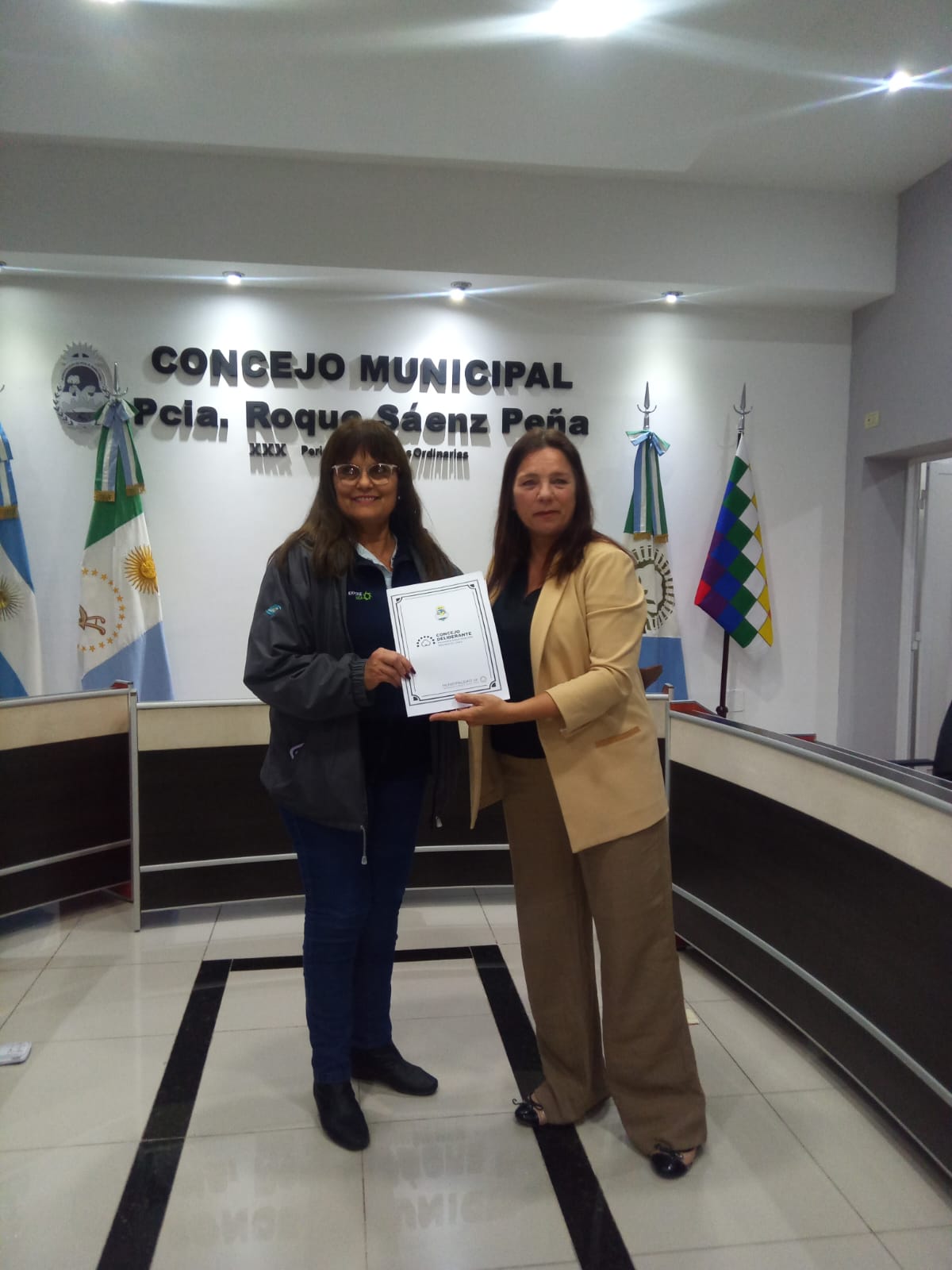 Este martes, en el recinto del Concejo Deliberante de Presidencia Roque Sáenz Peña, se realizó un reconocimiento a la Ingeniera Agrónoma María Alejandra Simonella en el marco de los 102 años del INTA. La directora Simonella, acompañada por sus colegas, fue recibida por la concejal María Elena Rodríguez, quien hizo entrega de la resolución de autoría de los concejales del Bloque Unión Cívica Radical, integrado por Andrés Neznajko, María Elena Rodríguez, Denis Kisiel, Soledad Pérez y Pablo Hucokvky.