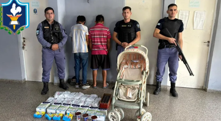La Policía recuperó 7 cajas de leche en polvo; 4 paquetes de chocolate en polvo; tres potes de dulce de leche; una caja de dulce de membrillo; 13 paquetes de bolsas tipo camiseta, y un cochecito para bebés.