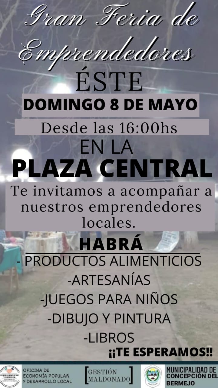 Este domingo 8 de Mayo el municipio de Concepción del Bermejo invita a toda la comunidad a participar de un nuevo encuentro de la Gran Feria de Emprendedores.