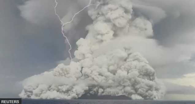 El volcán submarino entró en erupción el sábado, escupió una columna de ceniza al cielo y provocó advertencias de olas de 1,2 metros. La erupción fue tan fuerte que se pudo escuchar en Nueva Zelanda, a 2.383 km de Tonga.