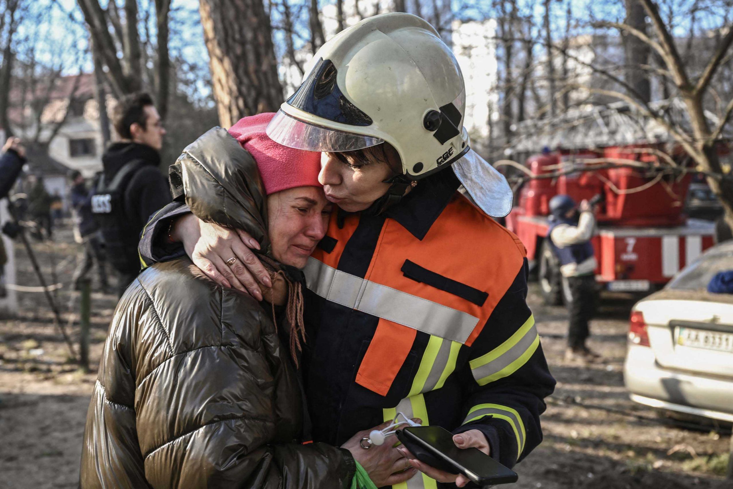 En Sviatoshin, en el oeste de Kiev, un bombardeo golpeó un edificio de 16 plantas donde «los cuerpos de dos personas (fallecidas) fueron recuperados y 27 personas fueron rescatadas», indicaron las autoridades en un comunicado en Facebook.