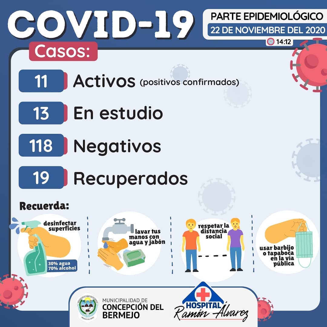 El municipio de Concepción emitió un nuevo informe epidemiológico de la localidad, en el cual se confirma un nuevo caso positivo, habiendo así once hasta el momento, y trece en estudio.