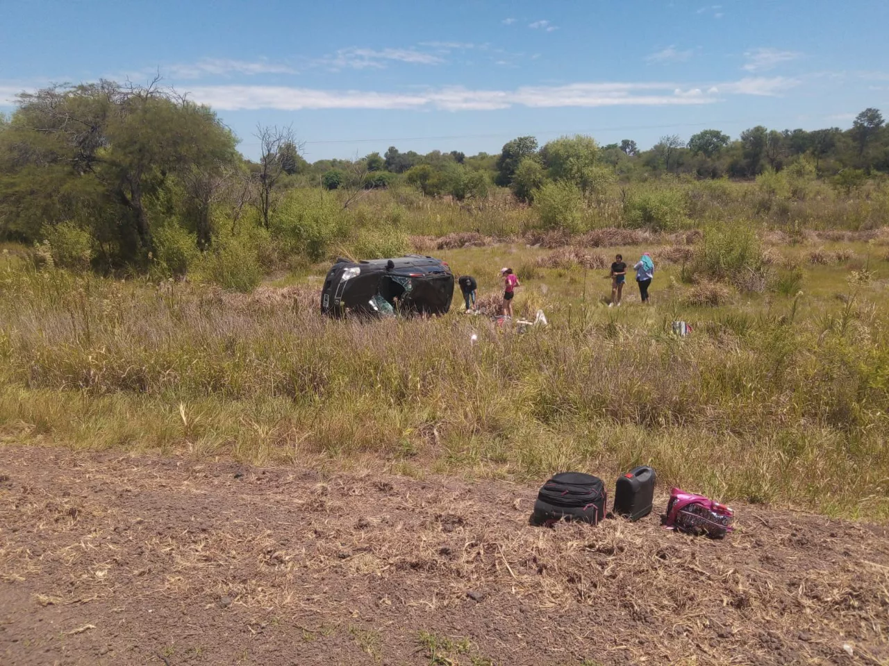 Al llegar, constataron el vuelco de una camioneta Fiat Fiorino, blanca. A bordo del rodado viajaban un hombre de 72 años, y dos mujeres de 87 y 67 años.
