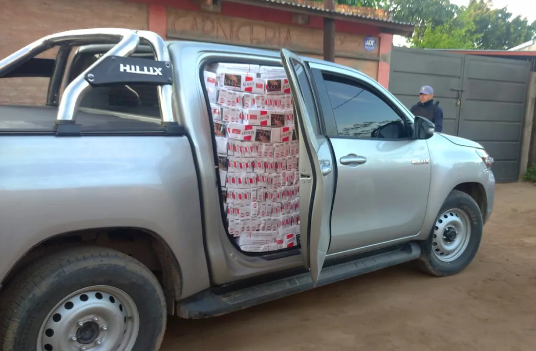 En el lugar, los efectivos demoraron a cuatro personas (todas mayores de edad), oriundas de la provincia de Formosa, y dos camionetas Toyota (roja y gris), ambas con equipo de radio base y una de ellas «con carga de brezas de cigarrillos», agrega el escrito.