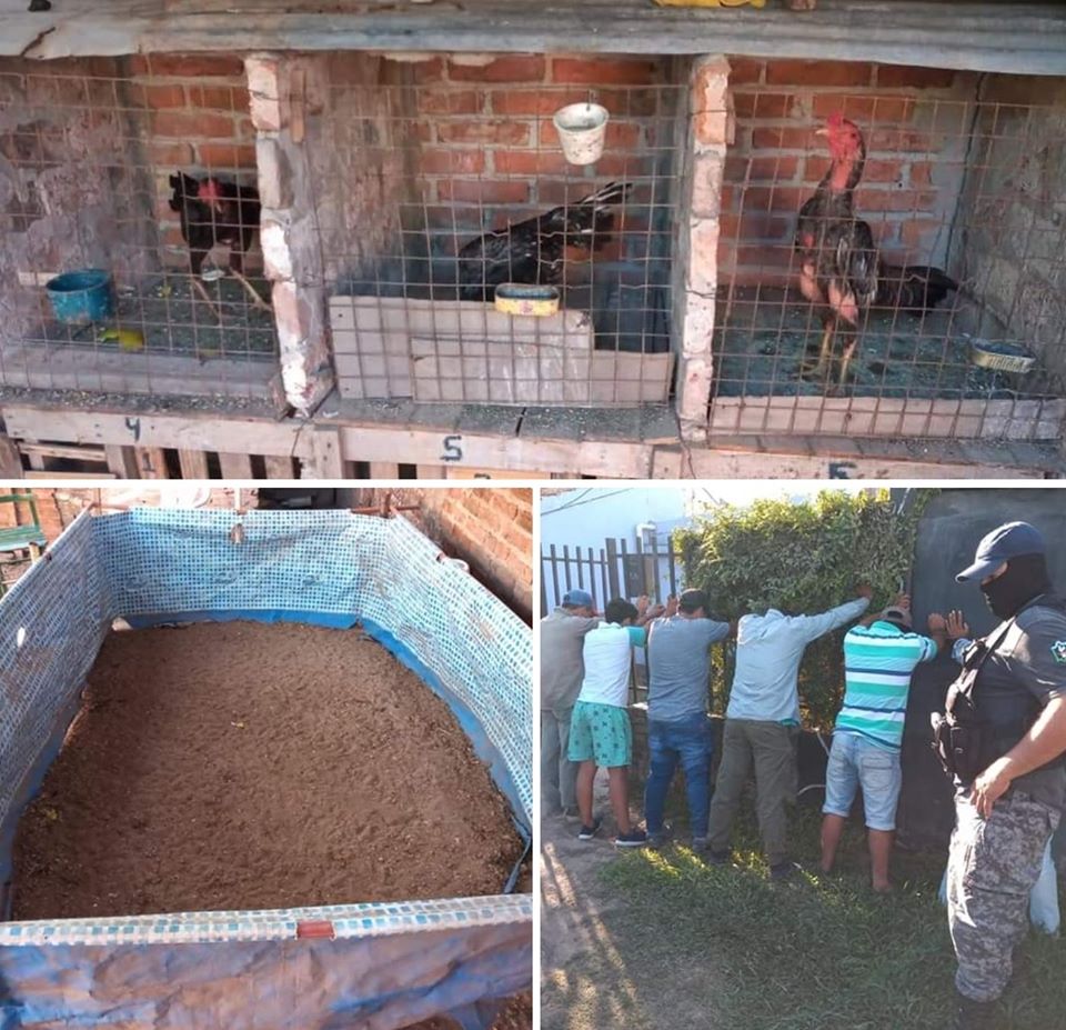 Al ingresar a la vivienda, la policía constató la presencia de varios hombres y de diez gallos en aparente mal estado encerrados en una jaula, por esto último, se solicitó la presencia de personal del Departamento de Seguridad Rural local, quienes se hicieron cargo del procedimiento por competencia.