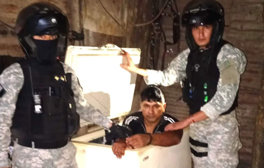 Durante el rastrillaje, el personal policial localizó un rancho precario y observó que el evadido intentaba ocultarse dentro de un freezer en desuso, por lo que se procedió a su inmediata extracción y aprehensión, adoptando las medidas de seguridad correspondientes.